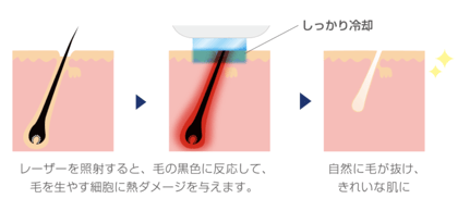 毛には毛周期があり、部位にもよりますが約20〜30%前後の成長期の毛のみにレーザー光が反応します。